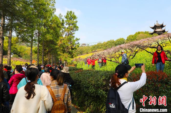 当天一早,和煦的阳光照耀城山沟,这里除了有十里桃花、油菜花、萝卜花组成的震撼“3D”立体花海,还有熙熙攘攘的“车龙”。正值周末,上万名游客涌入城山沟,在花海中取景“打卡”,用相机在镜头中定格春天的色彩。