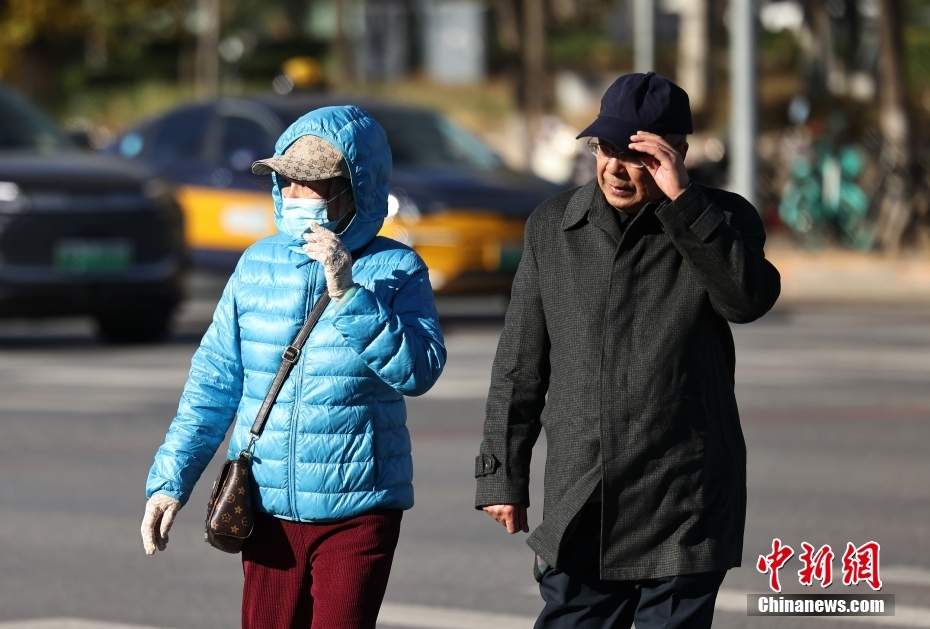 11月4日,受冷空气影响,北京迎来大风降温天气。图为市民在冷风中前行。