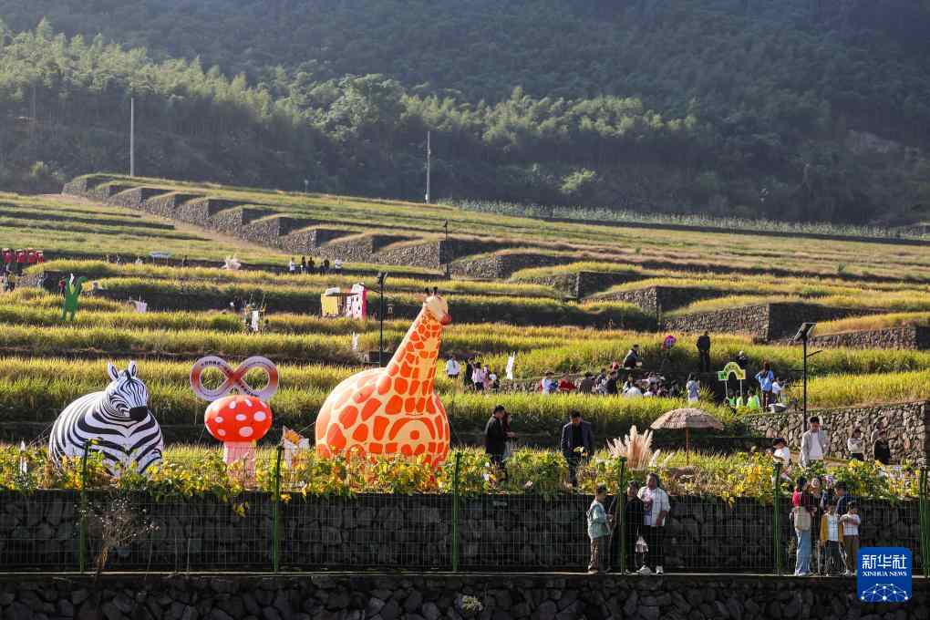 锦北街道龙马村的稻田里装扮了各种趣味景观(11月2日摄)。