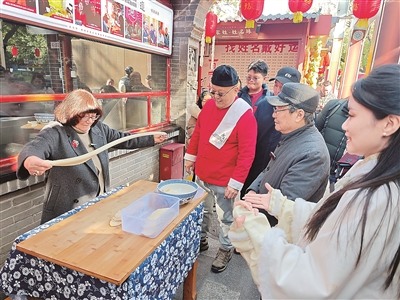 2024年12月26日,梅毕娜(左一)在西安永兴坊体验陕西特色面食制作。杨小兵摄