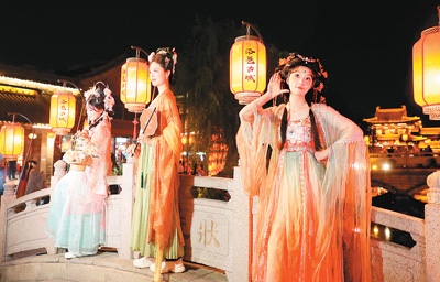 漫步在河南省洛阳市的洛邑古城,满城华裳与古城风华交相辉映。游客变身唐代的贵妃、宋代的士大夫、明代的锦衣卫等,体验与唐宋八大家吟诗作赋,与百里弘毅探案解密,与乔峰共赴武林大会……大街上开车的“汉朝公主”、骑电动车的“江湖大侠”、坐地铁的“唐僧师徒”随处可见。