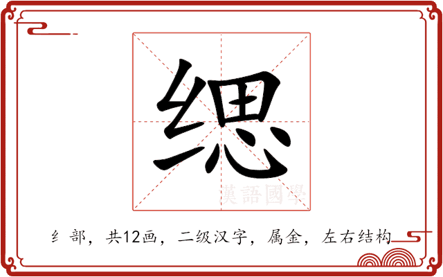 缌,通用规范汉字,二级汉字,序号5334,拼音是(sī),纟部,共12画,形声字,左右结构,五行属金。