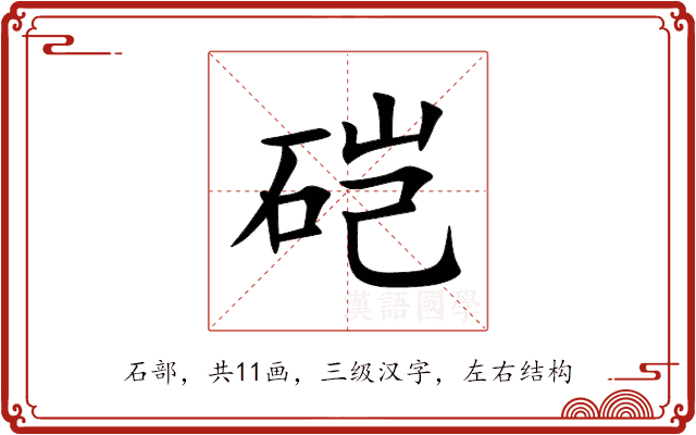 硙,通用规范汉字,三级汉字,序号7147,多音字,拼音是(wéi 或 wèi),石部,共11画,形声字,左右结构。