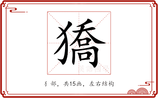 〔獢〕字拼音是xiāo,左右结构,可拆字为犭、喬。