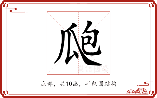 瓟,位于中日韩统一表意文字 (基本汉字),Unihan编码U+74DF,多音字,拼音是(bó 或 páo),瓜部,共10画,半包围结构。
